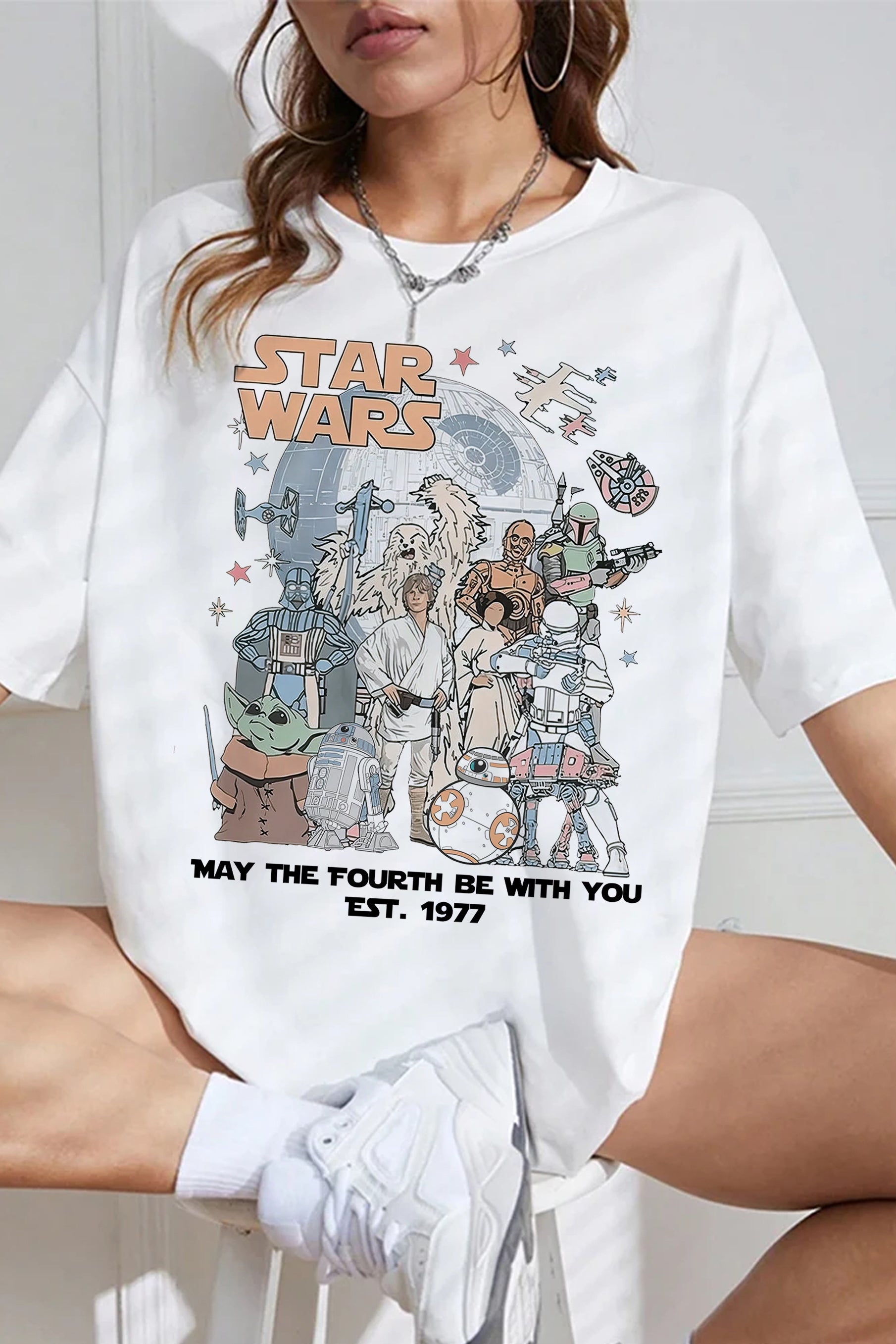 Vintage Disney Star Wars May the Force be with you Est 1977 Tee For Women