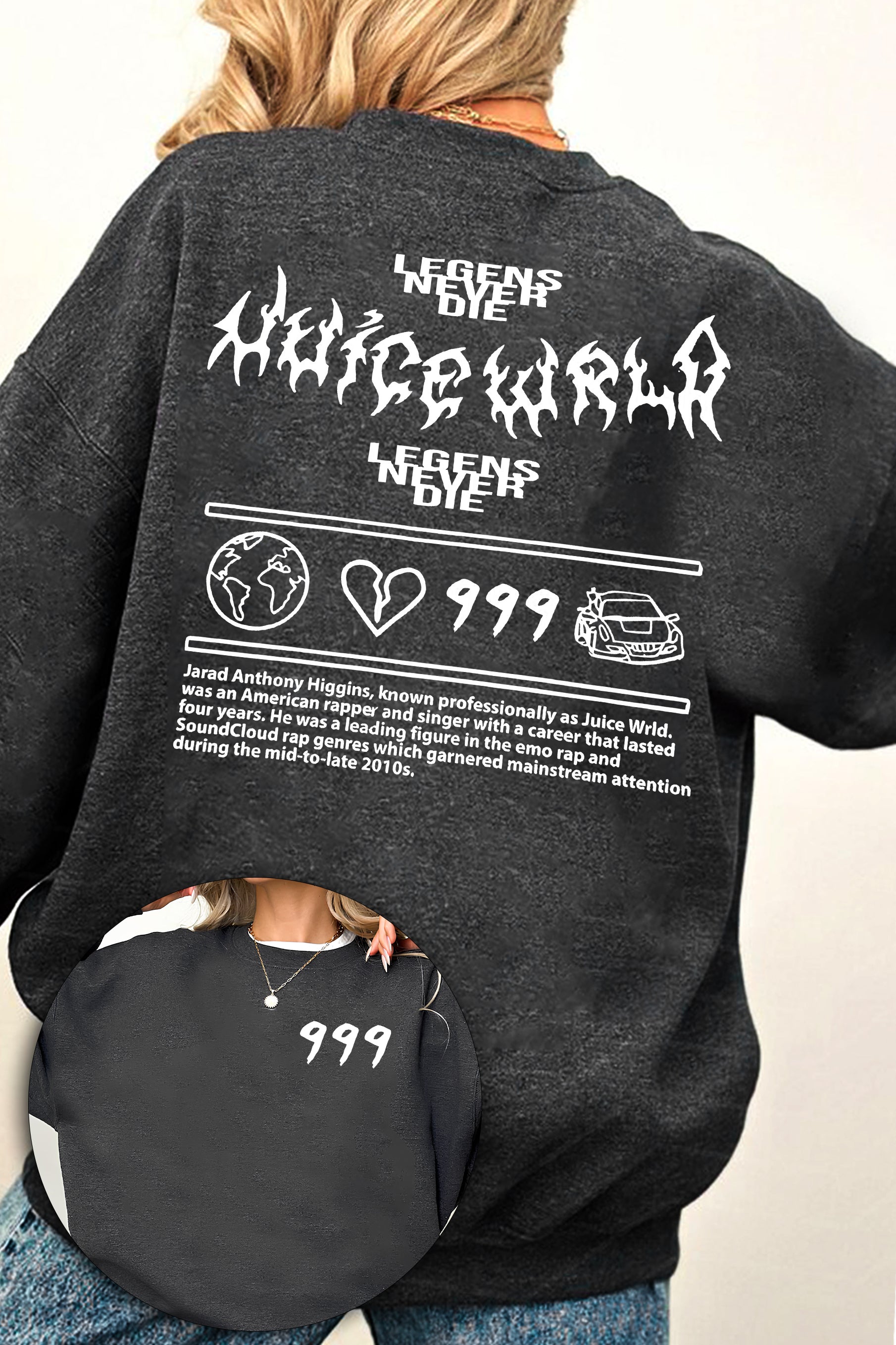 Juice WRLD-999 double-sided printed men's hoodie