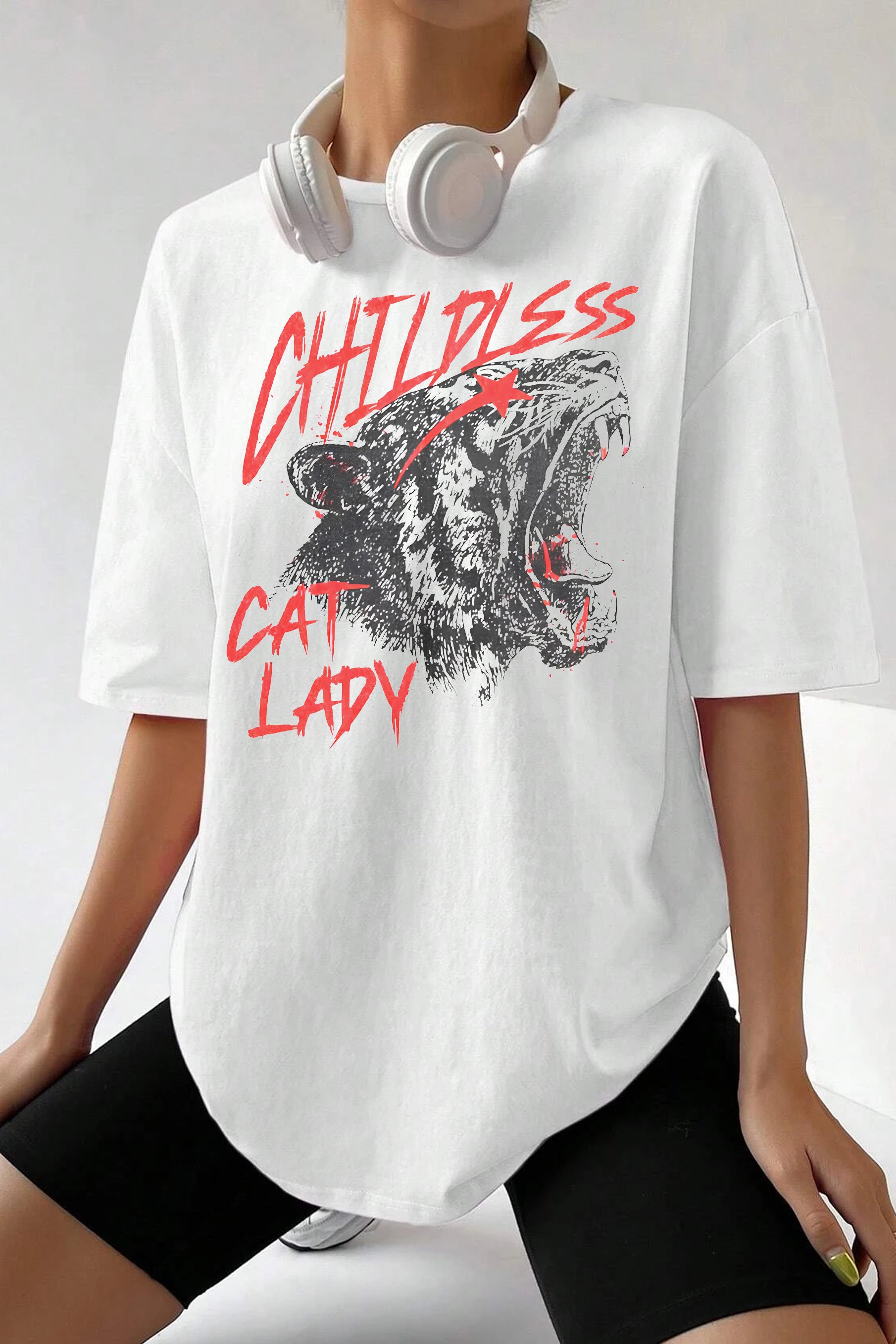 Graffiti style Childless Cat Lady Tee For Women