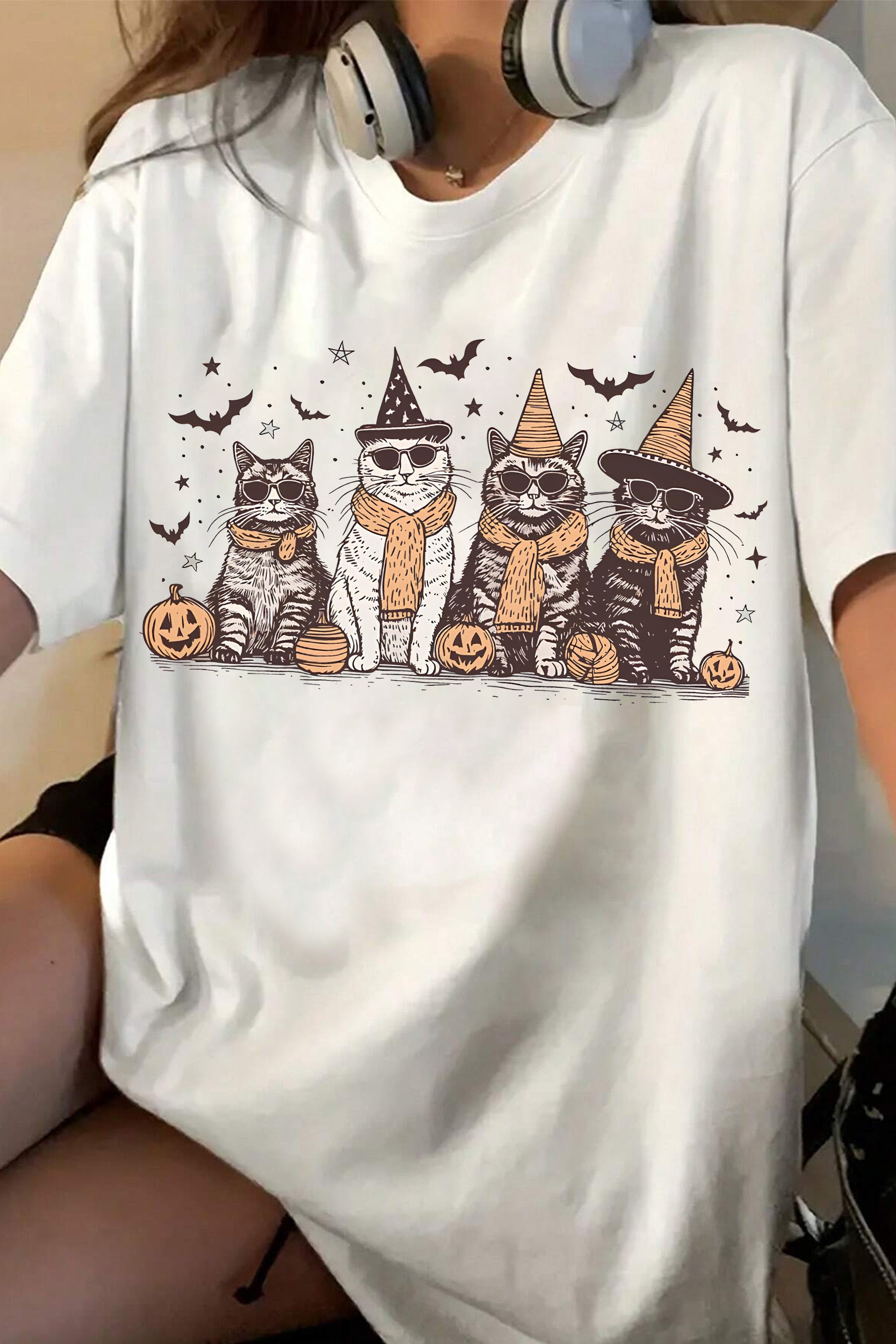 Cool Halloween Cats Tee For Women
