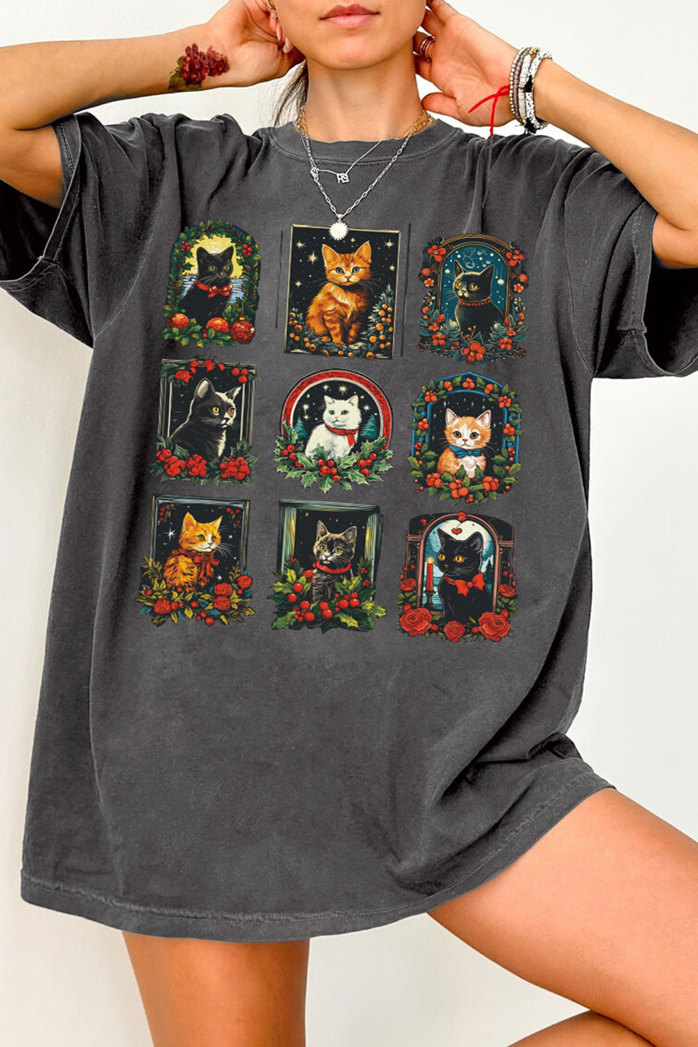 Vintage Christmas Cat Tee For Women
