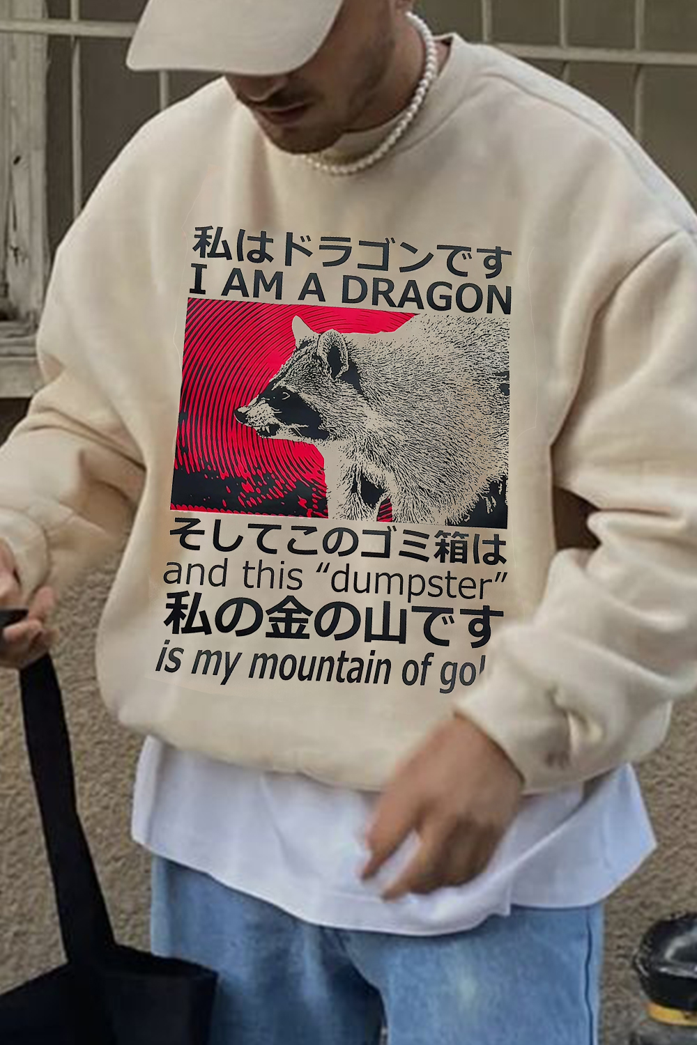 Japanese Culture Print Men's Round Neck Sweatshirt