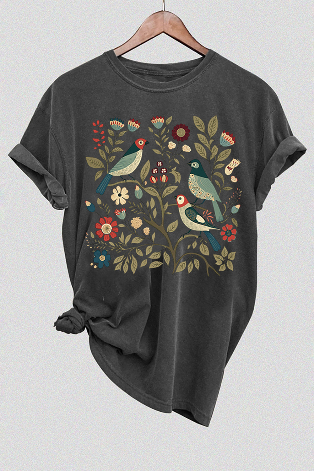 Cottagecore Birds and Flowers Tee For Women