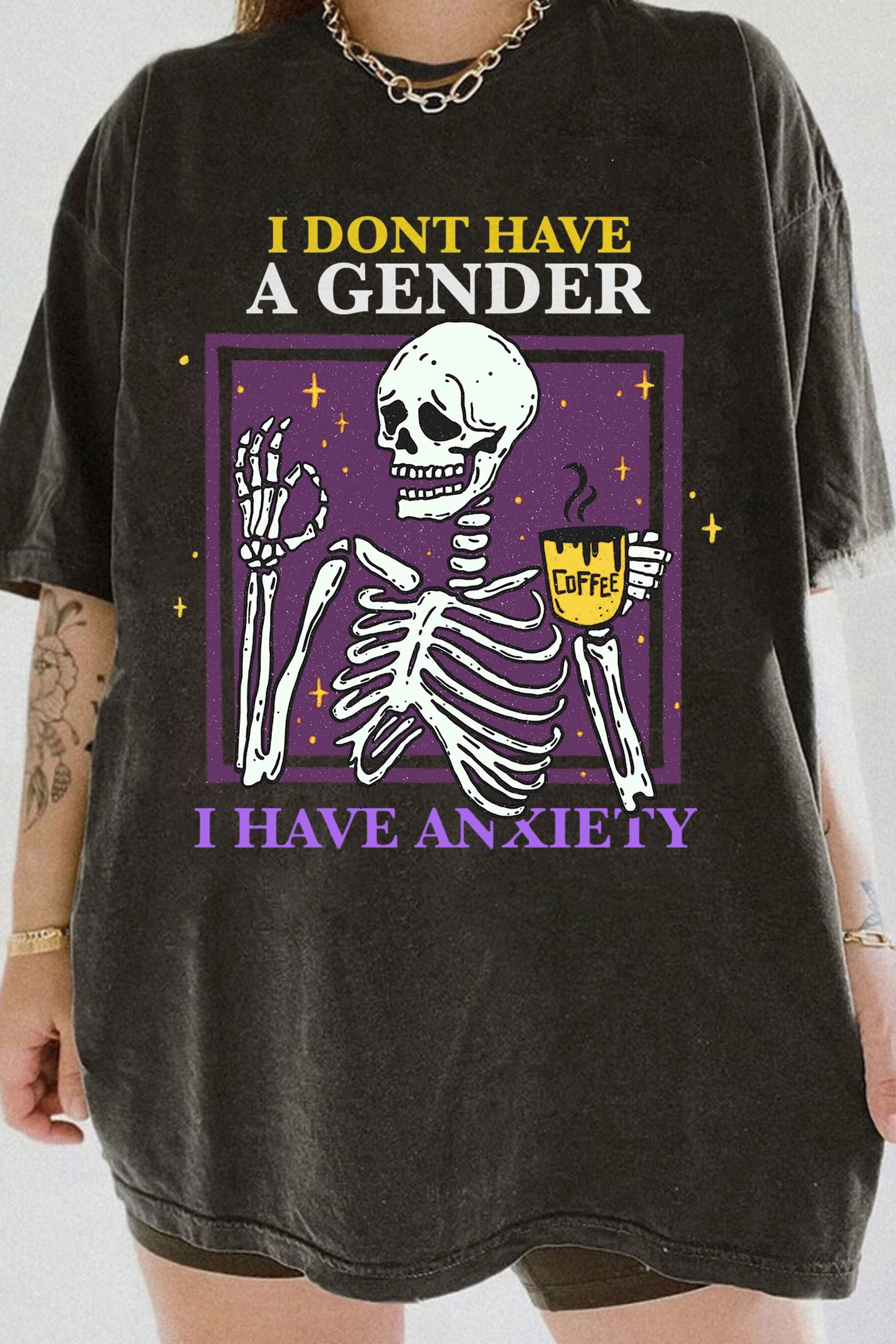 "I don't have a gender I have anxiety" lgbt skeleton aesthetic Tee For Women