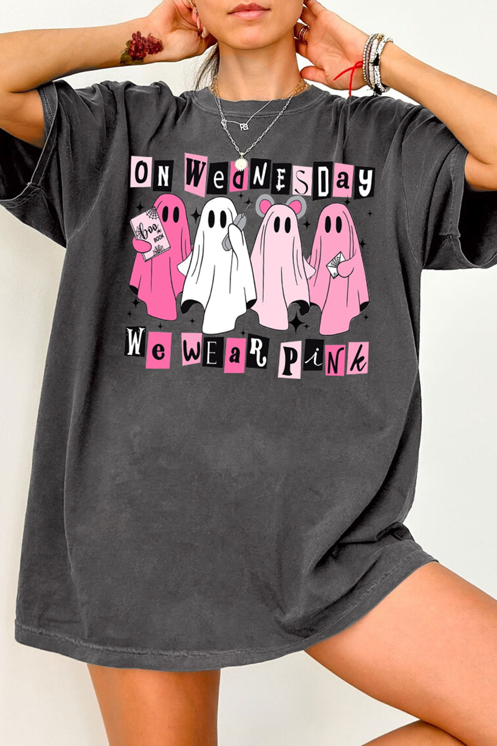 On Wednesday We Wear Pink Halloween Pink Ghost Tee For Women