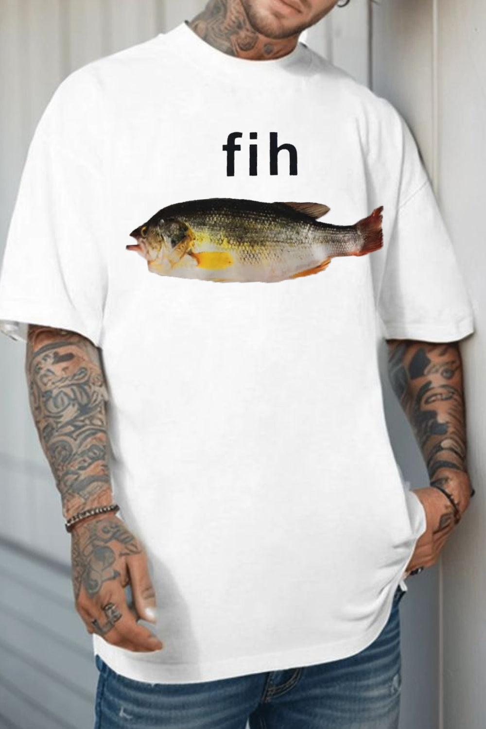 “Fih” Funny Misspelled Fish Meme, Simple Humor T-shirt