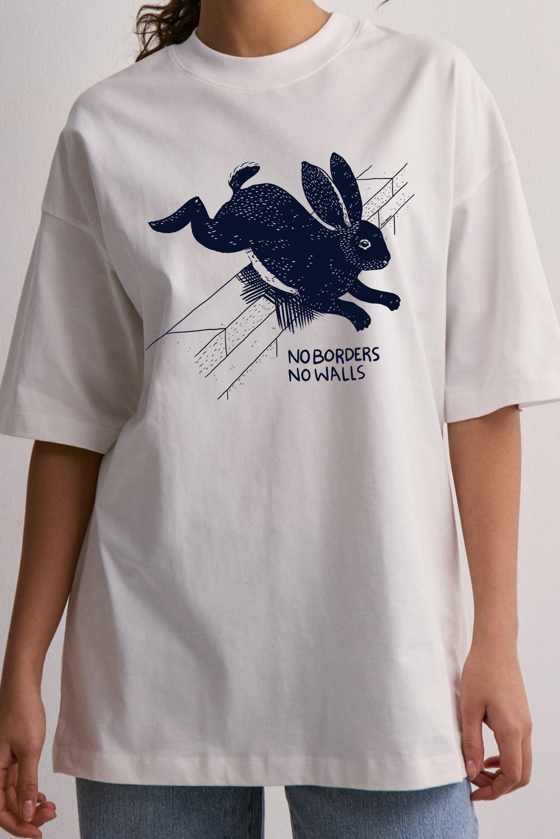 No Borders No Walls Bunny adult leftist T-shirt
